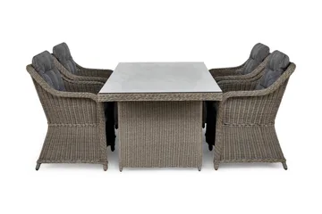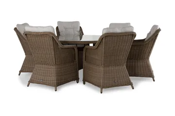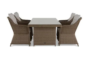 Hagemøbler spisegruppe som er laget for å stå utendørs tåler fukt, men kan bli støvete eller skitten. Den enkleste måten å rengjøre din utendørsspisegruppe, er å tørke av den med en fuktig klut og litt mildt rengjøringsmiddel. Har du spørsmål om våre spisegrupper som kan stå utendørs, er du alltid hjertelig velkommen til å kontakte vår kundeservice.