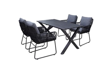 Utendørs møbelgruppe 150 cm bord & 4 Levanto grå stoler Svart