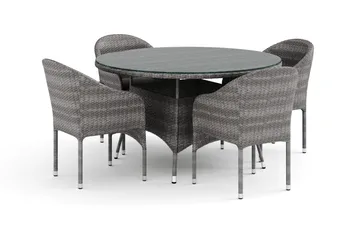 Thor utendørs rund spisegruppe 140 cm med 4 Thor lenestoler
