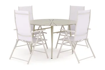 Tunis utendørs rund spisegruppe 120 cm med 4 Sanna regulerbare stoler