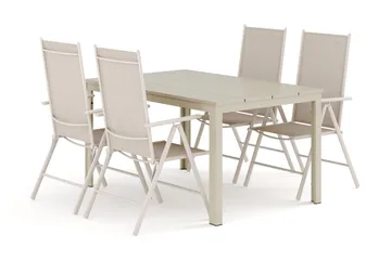 Tunis utendørs spisegruppe 140x90 cm med 4 Sanna posisjonsstoler