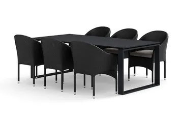 Devon utendørs spisegruppe 210x100 cm med 6 Thor lenestoler
