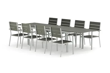 Tunis utendørs spisegruppe, uttrekkbar 205/305x90 cm med 8 Tunis stablestoler
