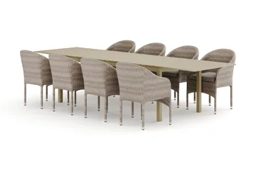 Tunis utendørs spisegruppe 205x90 cm med 8 Oliver karmstoler med pute
