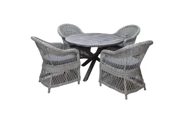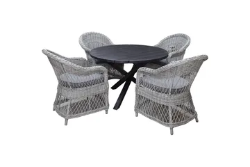 Utendørs møbelgruppe Ø 112 cm bord & 4 Merida grå stoler Brun