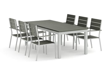 Tunis utendørs spisegruppe 205x90 cm med 6 Tunis stablestoler