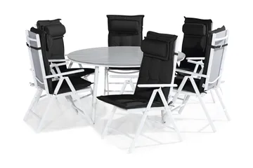 Tunis Spisegruppe 140 Rund + 6 Maggie Posisjonsstol m Pute