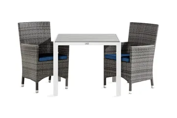Tunis Spisegruppe 90x90 + 2 Tunis Stablestol m Pute