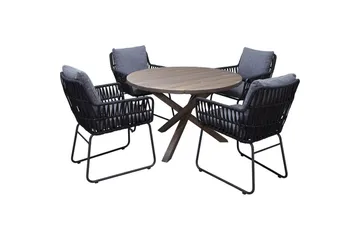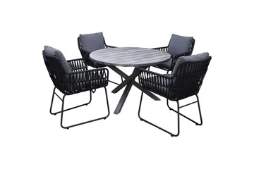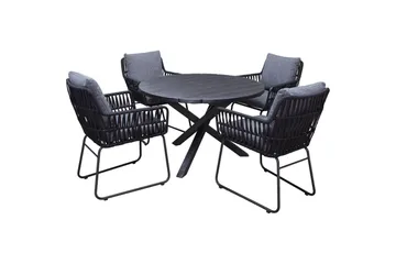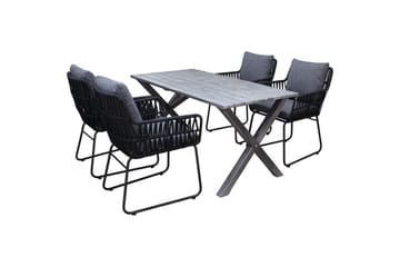 Utendørs møbelgruppe 150 cm bord & 4 Levanto grå stoler Svart