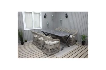 Utendørs møbelgruppe 190 cm Bord & 6 Merida naturlige stoler Grå