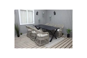 Utendørs møbelgruppe 220 cm bord 26 6 Belize grå stoler Svart