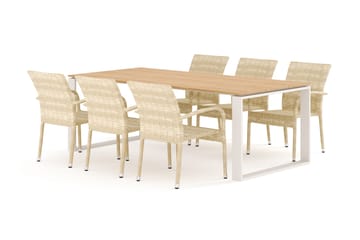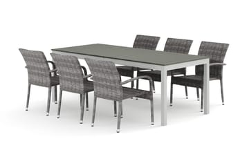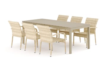 Devon utendørs spisegruppe 210x100 cm med 6 Thor Light utendørs lenestoler