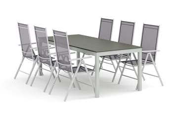 Devon utendørs spisegruppe 210x100 cm med 6 Sanna regulerbare stoler