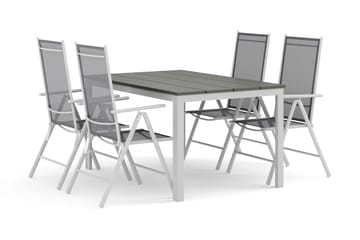 Tunis utendørs spisegruppe 140x90 cm med 4 Sanna regulerbare stoler