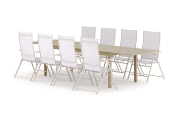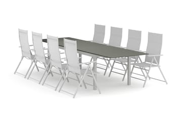 Tunis utendørs spisegruppe, uttrekkbar 205/305x90 cm med 8 regulerbare stoler