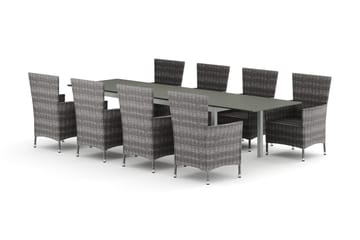 Tunis utendørs spisegruppe, uttrekkbar 205/305x90 cm, med 8 Thor lenestoler