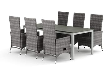 Devon utendørs spisegruppe 210x100 cm med 6 regulerbare stoler