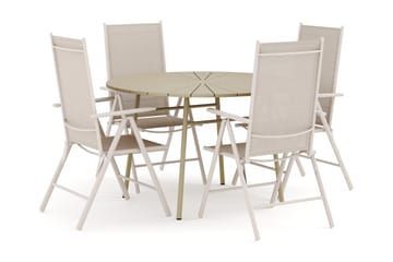 Tunis utendørs rund spisegruppe 120 cm med 4 Maggie regulerbare stoler