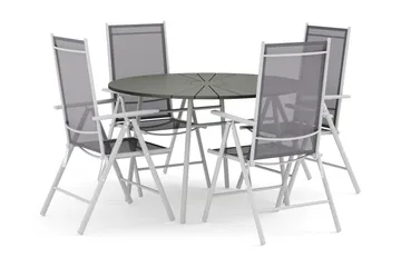 Tunis utendørs rund spisegruppe 120 cm med 4 regulerbare stoler
