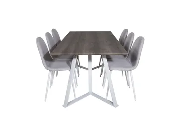 Polar Spisegruppe 180 cm Rektangulær med 6 Velvet Stoler