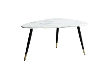 Sofabord Wohnling marmorstil 90 cm, trekantet moderne stil Marmor Hvit