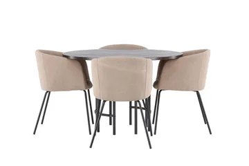 Dipp Spisegruppe 115 cm Rund med 4 Velvet Stoler
