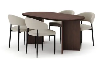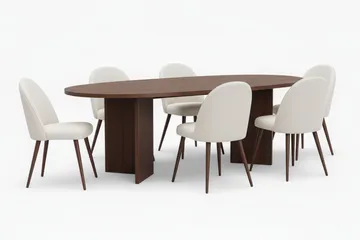 Sett stilen med en oval spisegruppe! Med sitt spesielle formspråk kan en oval spisegruppe gi et helt annet uttrykk på kjøkkenet eller et annet rom der den plasseres. I vårt sortiment finner du et stort utvalg av ovale spisegrupper av høy kvalitet i ulike størrelser og materialer. Velg mellom oval spisegruppe med forskjellige uttrykk og stiler. Kanskje er du ute etter noe rustikk, landlig eller en oval spisegruppe som gir hjemmet ditt et moderne og trendy uttrykk? Hos oss finner du ovale spisegrupper i massivt tre som alm og eik, men også MDF (Medium Density Fibreboard) som består av finmalte trefiber og lim som er blitt sammenpresset under høyt trykk og høy varme. Uansett om du vil at din spisegruppe skal passe inn med en innredningsstil som allerede er bestemt, eller om du helt enkelt vil la den sette stilen i resten av kjøkkenet eller spisestuen, så finner du ovale spisegrupper som stiller høye krav på både design og komfort hos Trademax. Klikk blant vårt brede utvalg og velg en oval spisegruppe etter din personlige smak og stil.
