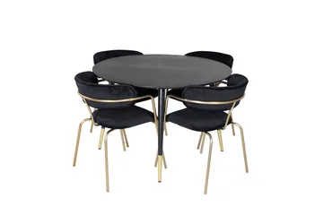 Estelle Spisegruppe 106 cm Rund med 4 Velvet Stoler