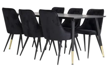 Dipp Spisegruppe 180 cm Rektangulær med 6 Velvet Stoler
