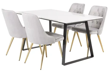 Estelle Spisegruppe 140 cm Rektangulær med 4 Velvet Stoler
