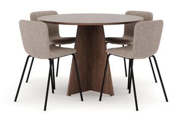 Bootcut Rundt Lite Spisebord i Valnøtt 110 cm med 4 Katy Spisestoler