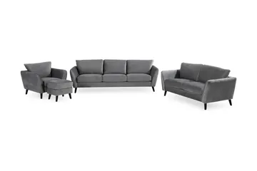 Trend Sofagruppe 3-seters + 2-seters Sofa + Lenestol + Fotskammel i Fløyel