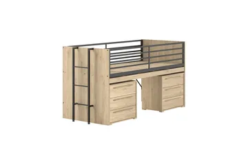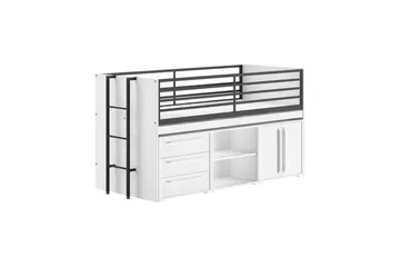 Halvhøy seng med stige og et sett med 3 skuffer Scott