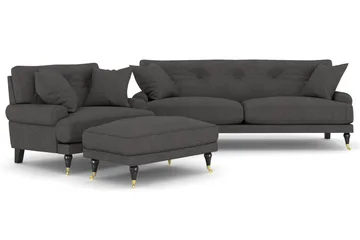 Howard Classic Sofagruppe 3-seters + 2-seters Sofa + Lenestol + Fotskammel i Stoff