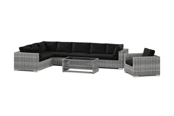 Bahamas utendørs sofagruppe 7-seters med to lenestoler og bord med hylle