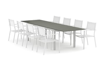 Tunis utendørs spisegruppe, uttrekkbar 205/305x90 cm, med 8 Tunis stablestoler