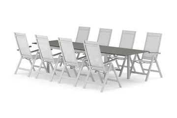 Tunis utendørs spisegruppe, uttrekkbar 205/305x90 cm med 8 Monaco Light posisjonsstoler