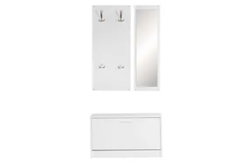 Garderobe Wohnling Vegghengt knaggrekke med speil, skohylle, sponplate, moderne Hvit