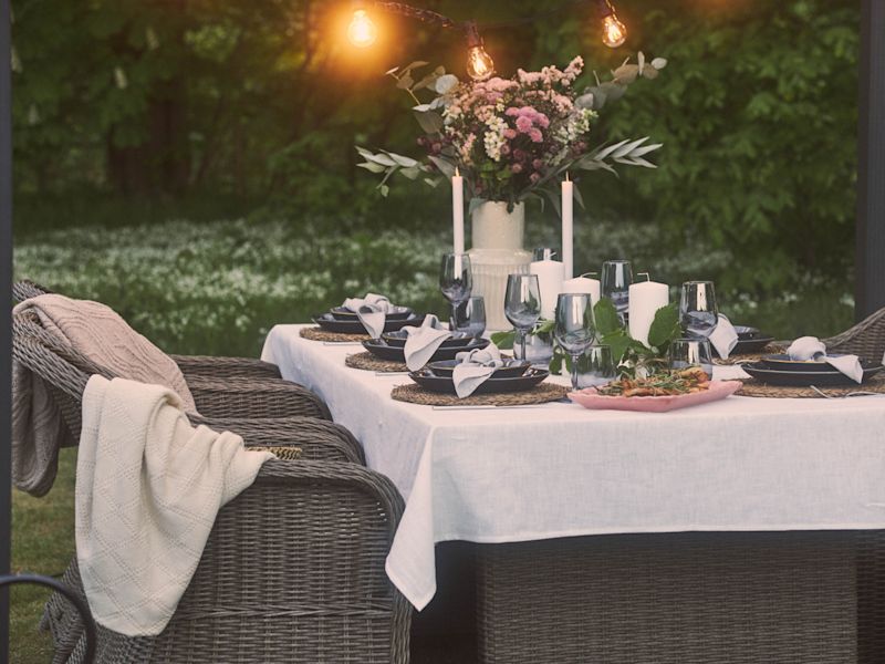 Møblene gjør hele forskjellen. En sofa, noen gode stoler og et lavt bord. Sleng på noen puter og pledd, så har du en plass folk faktisk har lyst til å sette seg ned. Grønne planter gjør også mye. Klatreplanter som eføy eller kaprifol får pergolaen til å føles som en naturlig del av hagen.