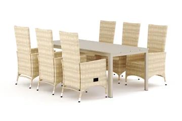 Comfort Gardens hagemøbler er laget i kunstrotting og aintwood, noe som gjør dem veldig holdbare samtidig som de er lettstelte. Både kunstrotting og aintwood er holdbare materialer som krever veldig lite vedlikehold og kan stå ute året rundt. Det er vær- og UV-bestandig og vannavstøtende som gjør dem til et perfekt materialvalg for hagemøbler!